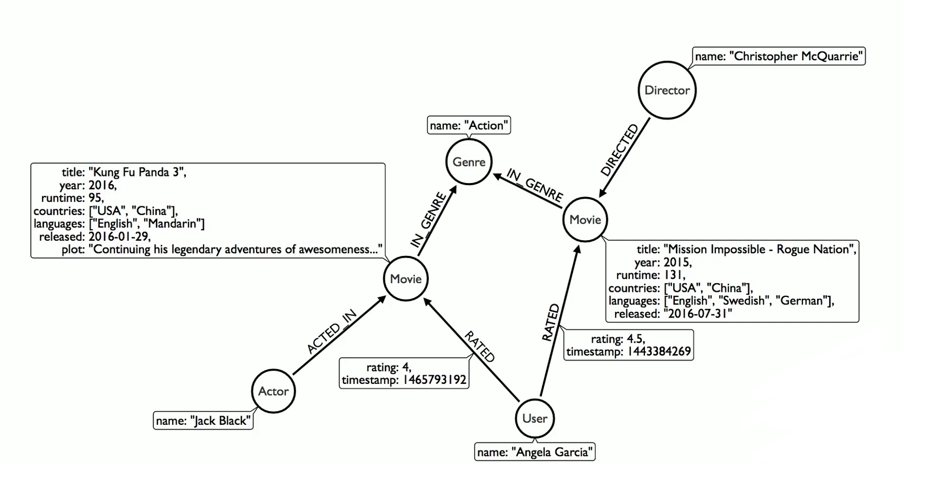 Movie에 대한 정보, Movie를 연기한 Actor의 정보, Movie에 대해 평가를 내린 User에 대한 정보 등이 담겨있다.
