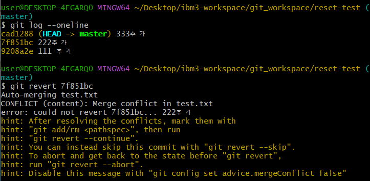 merge 충돌문제처럼 직접 수정 후 commit