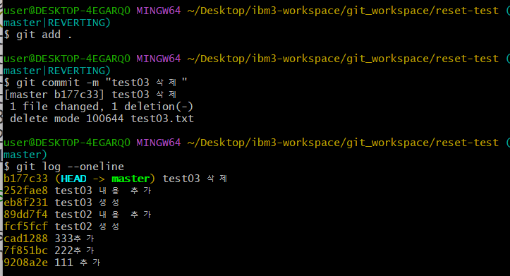 > test03.txt 생성만 한 때로 돌아감